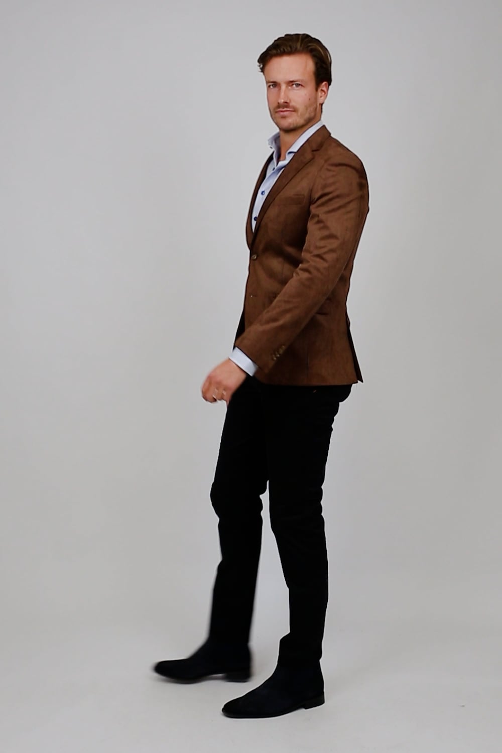 Opgrader din garderobe med denne elegante Slim-Fit blazer fra Suitable i en varm cognacfarve. Fremstillet af en blanding af polyester og strække, der sikrer optimal komfort og perfekt pasform hele dagen. Med knaplukning, smart stil og praktiske lommer med klap. Perfekt til enhver smart lejlighed!