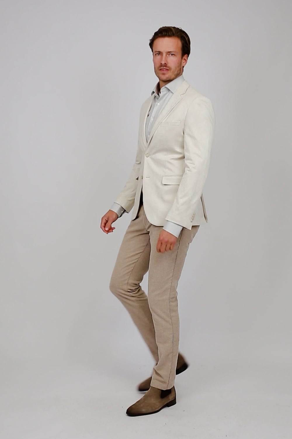 Opdater din garderobe med denne Suitable Blazer Pasetta Ecru! Den har en tætsiddende slim-fit pasform, lukkes med knapper og har praktiske lommer med klap. Med hovedsageligt polyester og en smule stræk garanterer den både komfort og stil.