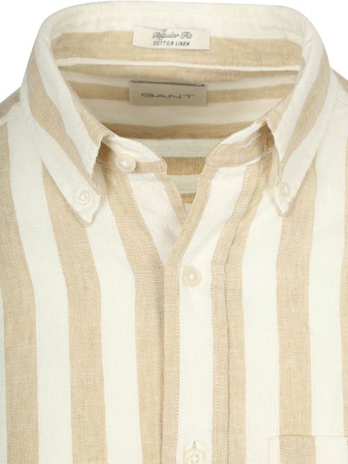 Opgrader din stil med denne GANT-skjorte! Den har en normal pasform og en smart knap-ned krave. Med det flotte stribede mønster er du sikret et stilfuldt look. Skjorten er lavet af bomuld og linned, hvilket giver både komfort og åndbarhed. Perfekt til en afslappet dag på kontoret eller en middag med vennerne!